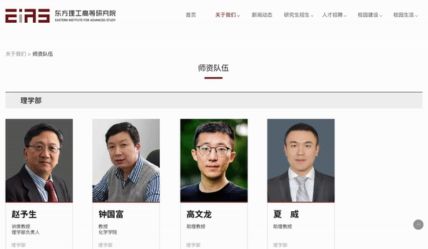 再來看看東方理工大學的師資情況。據官網消息,目前理學部、工學部和信息學部都已有師資儲備,不過其中尚未看到商學部的身影。
