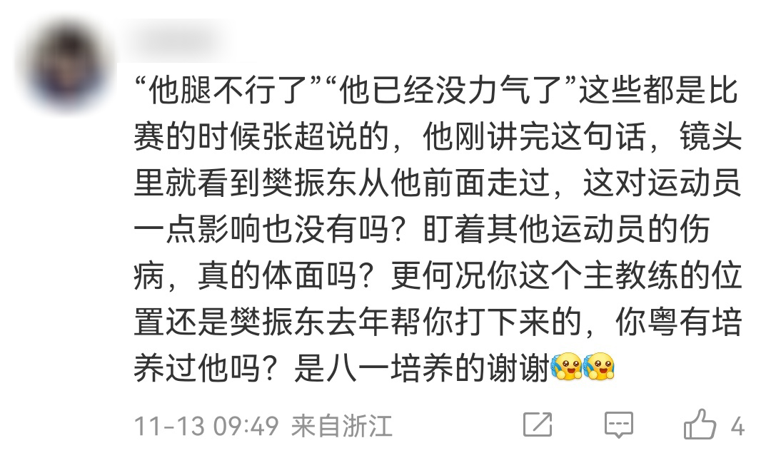 11月10日,張超在接受咪咕體育採訪時就回應過個人執教風格引發的爭議。