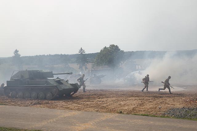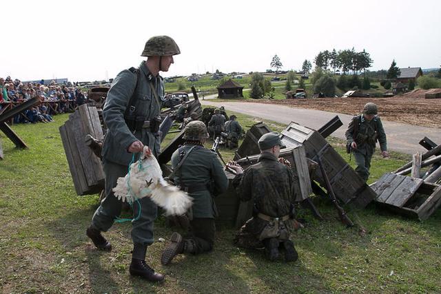 這個園區的軍迷聚會是很有名的,有些大型活動堪稱盛況,武器種類繁多,多數是原裝貨,哪怕仿製的也是神似,看過一個軍迷自制的德國1號坦克,發動機也是用的兩衝程,冒的煙,發的聲音都似當年。扮演德軍的甚至還抓了兩隻雞。