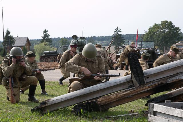 剛入園區,就碰上的一個小型的軍迷聚會,蘇德兩軍,服裝、槍支都是當年的。