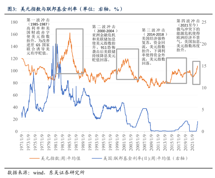 第二波衝擊(2000-2004)亞洲金融危機和美聯儲加息使美元指數抬升;