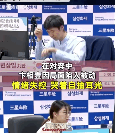 對手卞相壹在下棋過程中,節節敗退,一度情緒失控,邊哭邊抽自己耳光。