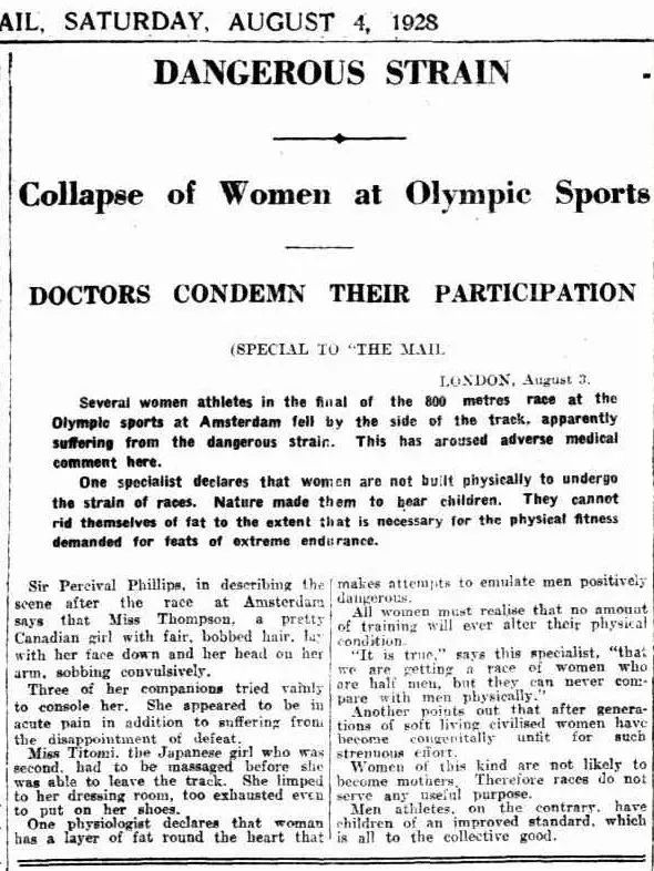 報道還附上當時醫學專家的觀點:“效仿男性運動對女性是危險的,比賽會損害她們的生殖功能,這樣的女性很難成為母親……”