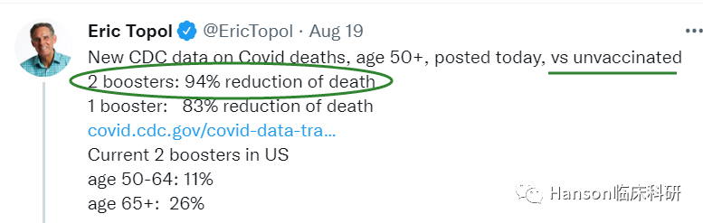 同時,美國疾控中心最新研究也表明:與未接種疫苗者相比,≥50歲人羣的死亡風險在接種疫苗人羣中明顯降低,3劑降低83%,4劑降低94%。