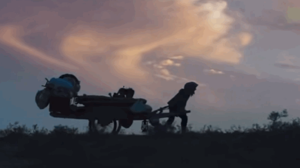 一個人扛下了一家的重量,遠方是濃重的烏雲,風雨降至。
