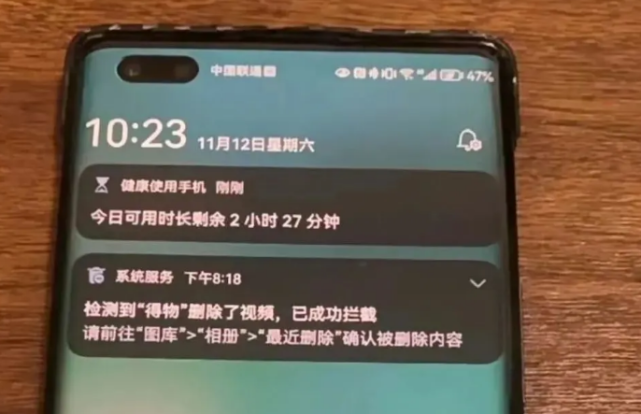 然而,後續該網友卻驚訝地在手機中看到來自系統的提示——“檢測到‘得物’刪除了視頻,已成功攔截”。看到系統提示的網友認為,得物通過獲取手機權限對其所存儲的證據視頻進行刪除。