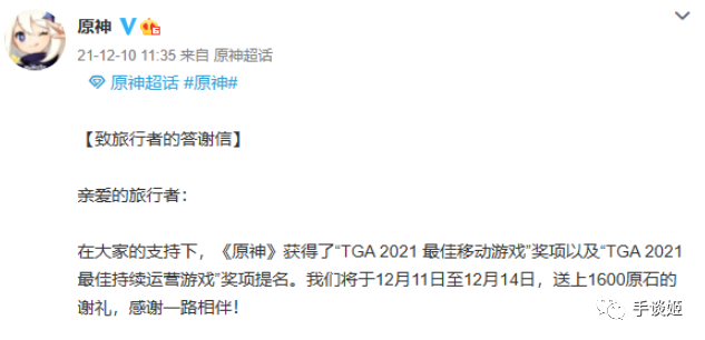 有些姬友可能會疑惑了,《原神》去年拿過這個獎啊?但是TGA沒説過拿獎的就不能再拿,《英雄聯盟》就獲過兩次“最佳電競遊戲”。而且原今年的更新了“須彌”的新內容,新東西還是挺多的。