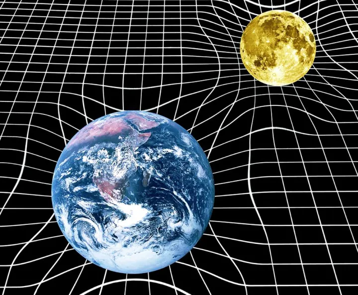 “廣義相對論” 指出,實際上,引力並不是一種真實存在的 “力”,而是 “時空”(space-time)本身的幾何形狀。“時空” 是理論物理學上,時間和空間的 “四維” 結合體,一個非常真實的存在。任何擁有質量的物體,都會使時空彎曲。彎曲的程度,取決於物體的質量的大小。