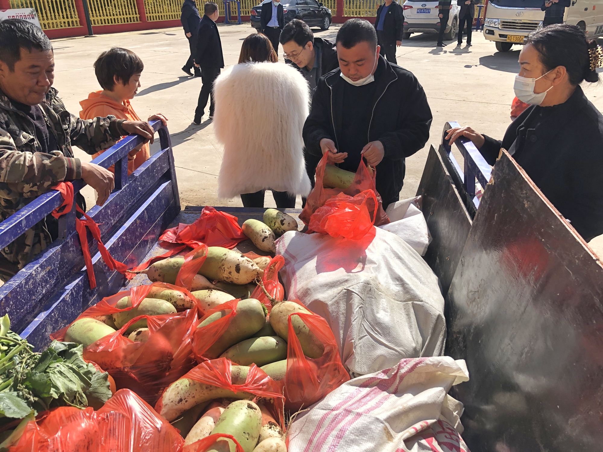 當談起脱貧户康秧家的情況時,駐村第一書記李文召把康秧家目前遇到的難題向大家做了詳細介紹。“康秧家地裏的8萬多斤蘿蔔因疫情面臨滯銷,很是發愁,希望藉助大家的力量幫她家渡過難關。”李文召把康秧家的情況一説,在場的所有工作人員紛紛幫忙消費,一會兒功夫剛出土的600多斤水嫩生態蘿蔔被購買一空。