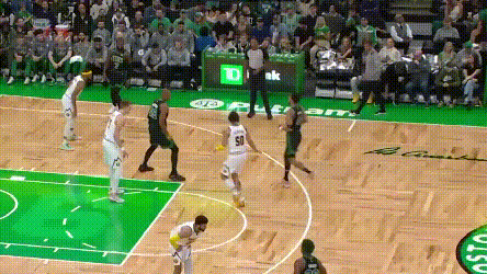 只能説,在凱爾特人的空間和戰術支持下,對塔圖姆來説,施展中距離攻堅的機會本就不多。凱爾特人有各種辦法,讓塔圖姆用更流暢的節奏完成出手,掩護,走位,發牌員保證,人到球到。