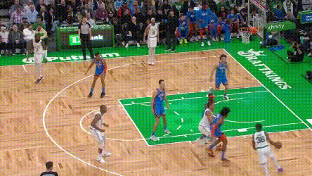 説真的,不談質量,只看形式,凱爾特人的比賽內容並不陌生,以至於我在考慮這篇文章時,也想不出什麼新的吹點。去聊一些綠軍防守存在的問題,至多也就是這樣一句話——的確沒啥好用的輪換中鋒。羅威不回來,5號位上必然有吃虧的時間。核心輪換在一塊打球時防守相對正常,並不突出的協防侵略性與卡位問題,其實上個賽季就存在,這個隱患值得注意。但在進攻足夠可靠的常規賽,想保持類似與雷霆第四節那樣兇悍的侵略性防守,恐怕也不容易。