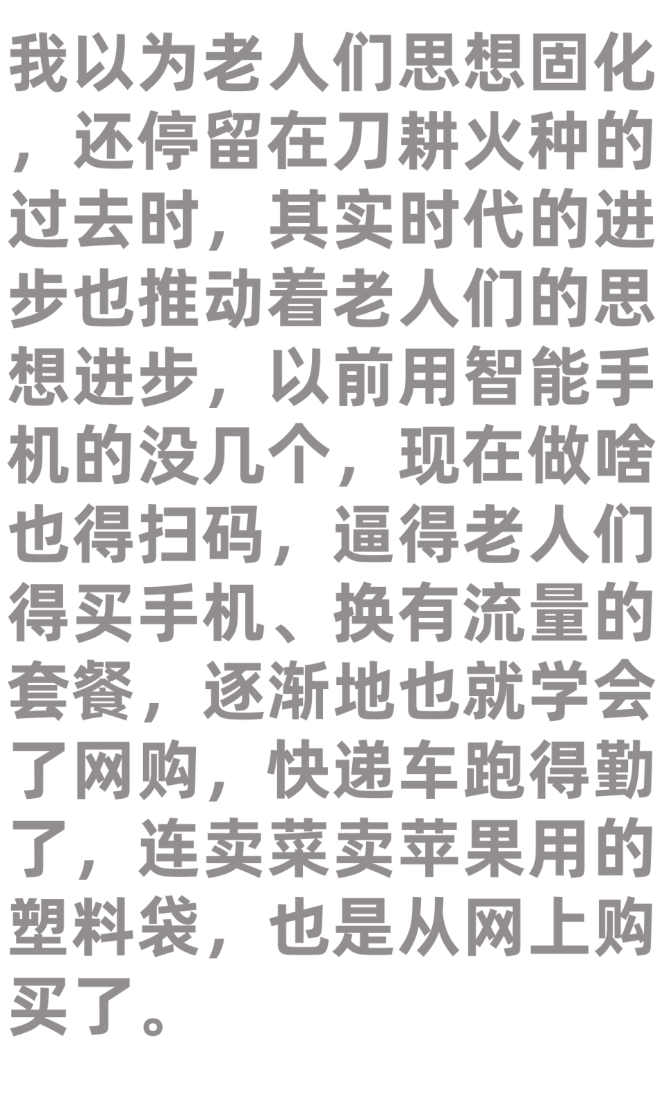 村裏的老人們也慢下來了。今年春天,縣裏養老保險中心讓給老人們做生存證明,需要用到智能手機,很多人沒有,有也不會用。我拿自己的手機給大家統一登錄認證,無非是讓他們眨眨眼睛、左右轉頭,證明這人活着,繼續領取社保,可即便是這麼簡單的動作,很多人都遲鈍到好幾次過不了關。