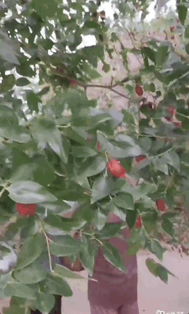 有一次回老家,我看到院子裏的棗樹紅了,我大(爸)在摘棗,我媽給老爸拽樹枝,午後暖融融的陽光撒在他倆臉上,一派歲月靜好的氣氛。我覺得這個畫面很美,掏出手機記錄下來。回家後,我編輯了一些字幕,配上了簡單的音樂發在快手上。第一條視頻沒幾個人看,我沒放在心上,照常刷短視頻玩兒。