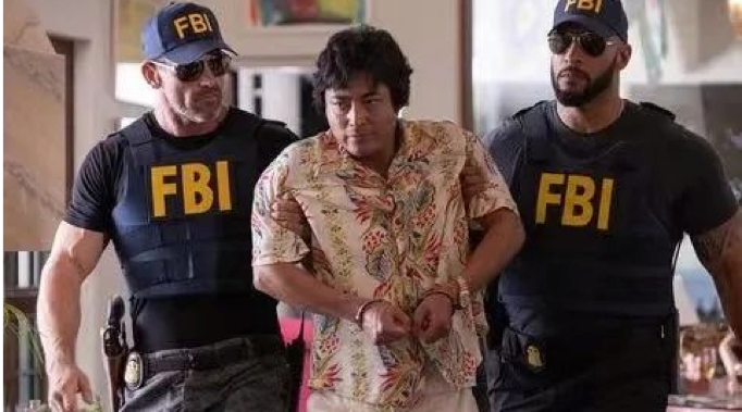 《全裸監督》中表現西村透被美國警方抓住的情景