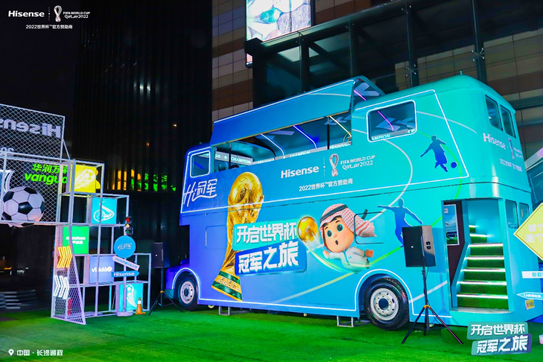 近日,海信還打造了一輛球迷巴士,並計劃巡遊全國十一城。球迷巴士分為兩層,一層打造“移動智慧之家”,探展者可通過場景化體驗到璀璨高端智能套系家電的品質和科技。巴士二層作為休閒空間,桌上足球、中東氛圍Bar、遊戲競技等一應俱全,可以品嚐到各種中東美食。與此同時,海信足球友誼賽也將先後在青島、上海、北京等10餘個城市拉開序幕。