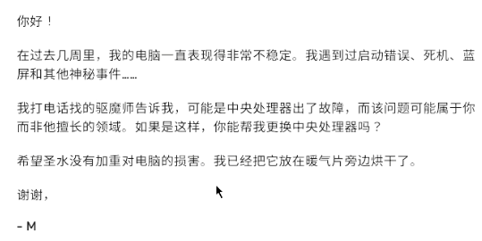 有的人遇到電腦問題首先想到的並不是來維修,而是去找了驅魔師,還給電腦撒上了聖水。