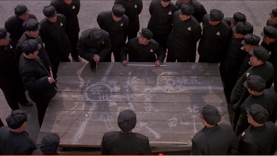 偌大的桌子變成了指揮部,“犯人”們圍着桌子揮斥方遒,指點軍事,在失敗後覆盤淮海戰役。