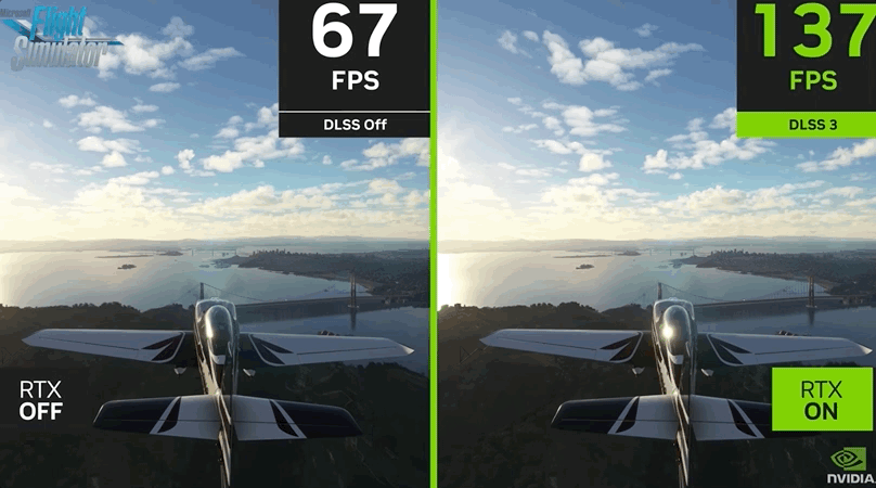 在Flight Simulator的特殊測試版本中,RTX 4080採用的DLSS 3技術,將GPU的平均幀率提高到127fps,而在DLSS 2中僅為59fps。