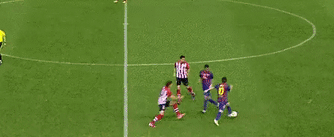 他獲得了完全的自由,得以自由釋放。全場比賽,梅西和埃託奧經常中路和右路換位,右後衞阿爾維斯大幅度推前,與埃託奧在右路打出配合。
