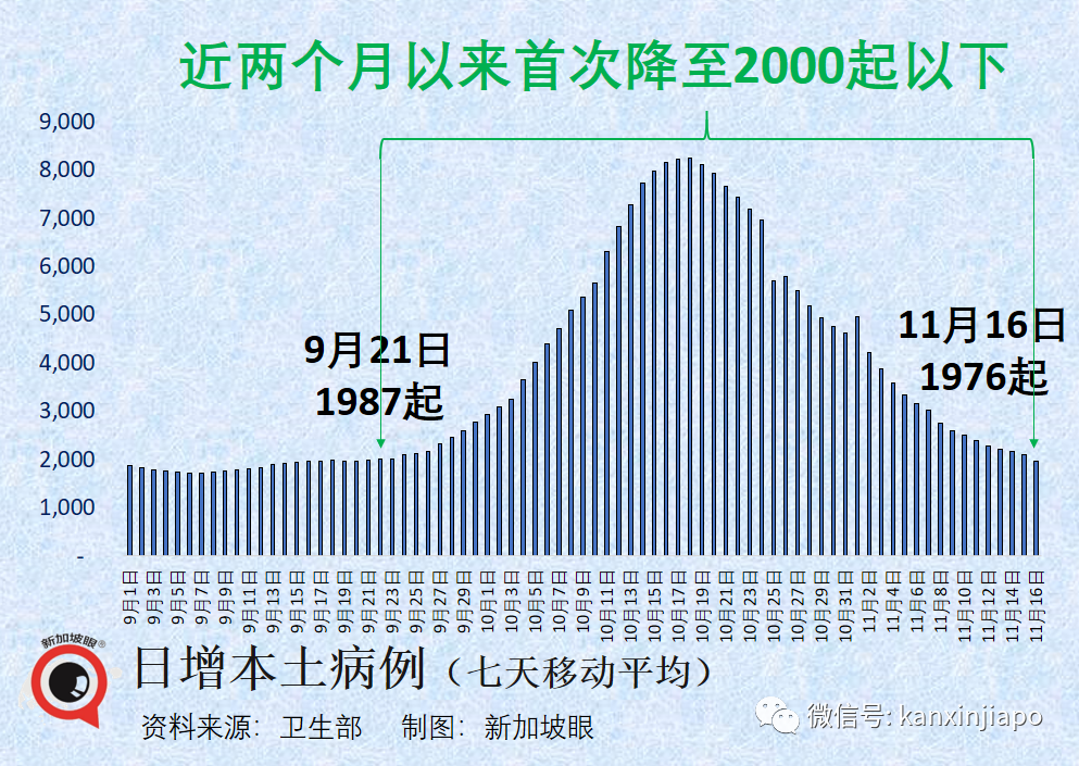 七天移動新增本土病例自前一天的2092起降至1976起。這是自9月21日的近兩個月以來,七天移動新增本土病例首次降至2000起以下。
