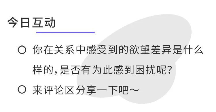比如,你只想要貼貼,而同時對方想要更進一步的邊緣性行為,你會感到“不匹配”所帶來的困擾。(後台回覆「邊緣性行為」,查看如何獲得更愉悦的性體驗。)但實際上你們都是有性需求的,只是在程度上會有差異,而怎樣看待和處理慾望之差才是重要的。****(後文會提到!)