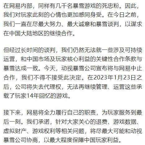 這紙公告最令人意外的地方,是兩家在過去緊密合作了14年的公司並沒有同時發聲,而是由暴雪搶先一步作出了聲明。導致這不僅讓玩家覺得事發突然,甚至連合作方網易看上去都有一些猝不及防。