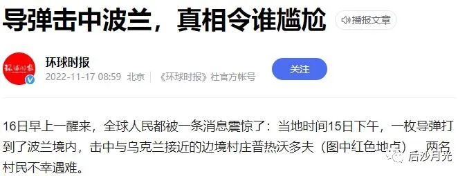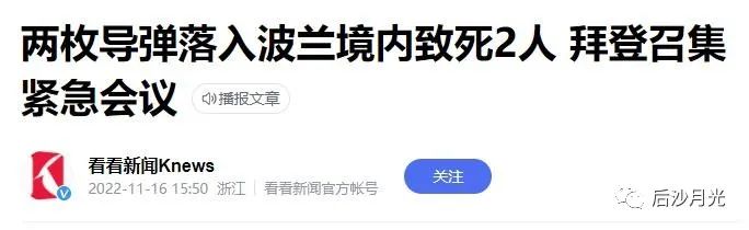 美國只能壓下“兩枚導彈”的説法,波蘭就只好改口為“一枚導彈”,然後,全球媒體也都改為“一枚導彈”。