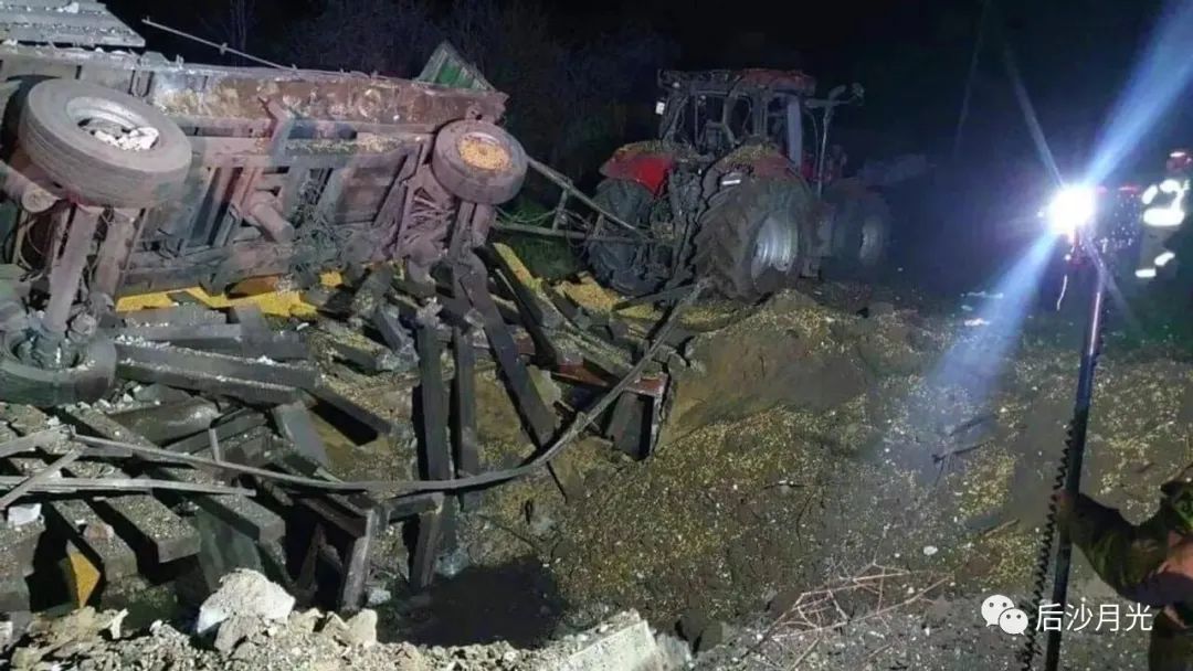 但從波蘭提供的爆炸現場照片看,拖拉機還是相對完好的。這是被防空導彈射中後呈現出來的特徵,而不是威力巨大的俄軍導彈,否則拖拉機早成零件了。