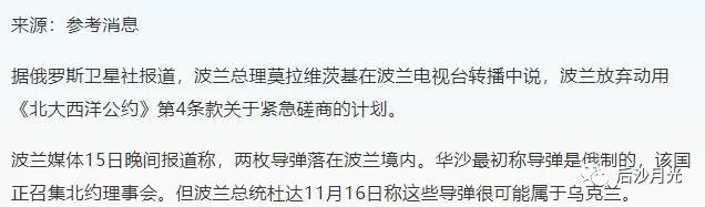 波蘭總理波蘭聲稱波蘭放棄啓動北約第4條的權利(成員國遭到襲擊後,北約要進行緊急磋商,發表對襲擊方的譴責和警告聲明)
