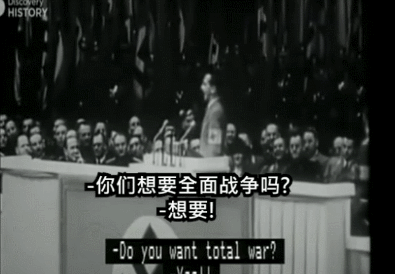 ▲二戰爆發時,德國年輕人用山呼海嘯般的狂熱回答德國納粹宣傳部長的問題