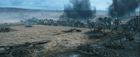 電影中用了大量的篇幅來表現工業化時代武器的威力,士兵們在前線的野戰隱蔽所,一旦被大口徑炮彈砸中,就很容易化為整班、乃至於整排人的集體墳墓。