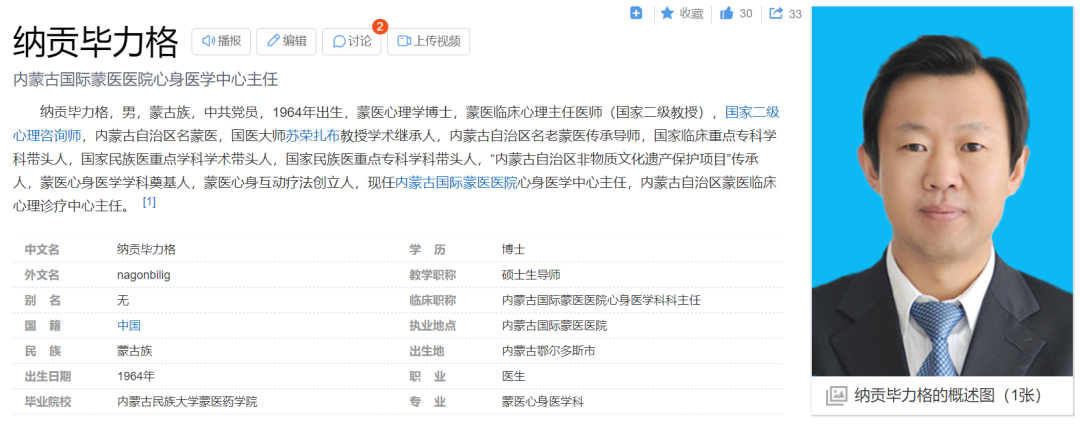 作為網紅醫生,納貢畢力格有一個用作客服的QQ號,個人信息包含教育經歷,顯示他畢業於北京大學醫學部,是一名科班出身的心理科醫生。更多的公開資料顯示,納貢畢力格的博士學位來自北京中醫藥大學。