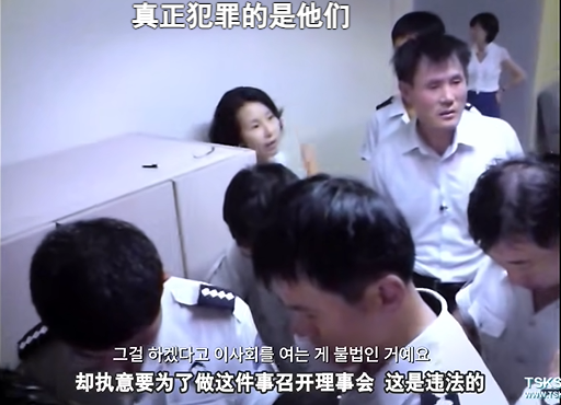 放送文化振興會的理事會上,由於調集的安保力量不夠,MBC工會執行委員長李根行衝入會場,怒氣衝衝地質問在場的各位理事,為什麼要逼迫嚴基永社長辭職?
