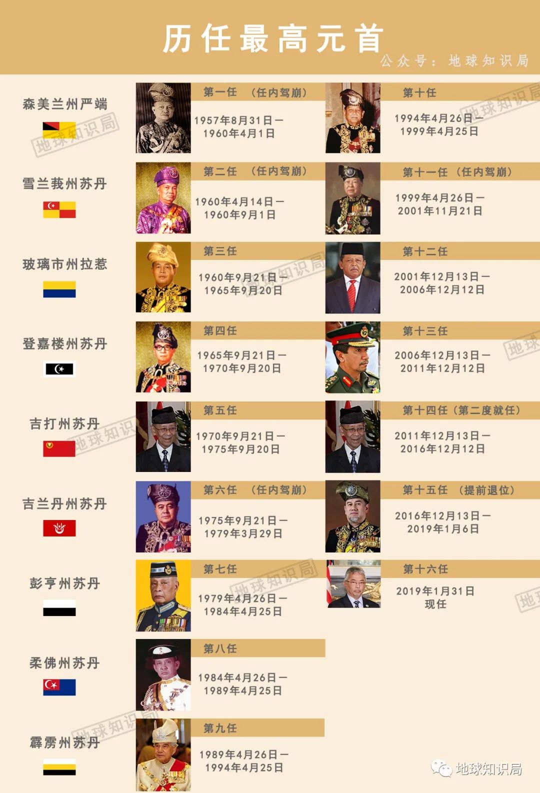 比如2019年1月6日,來自吉蘭丹的時任國家最高元首端古就宣佈辭去自己的職位,成為馬來西亞歷史上首位任期中就提前退位的最高元首。