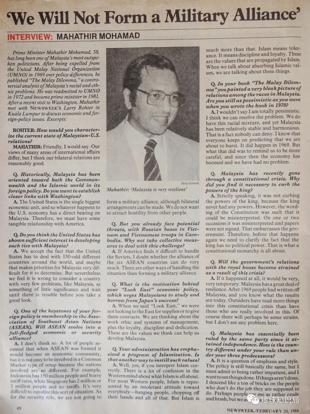 (1984年對馬哈蒂爾的採訪報道 圖:newsweek)▼