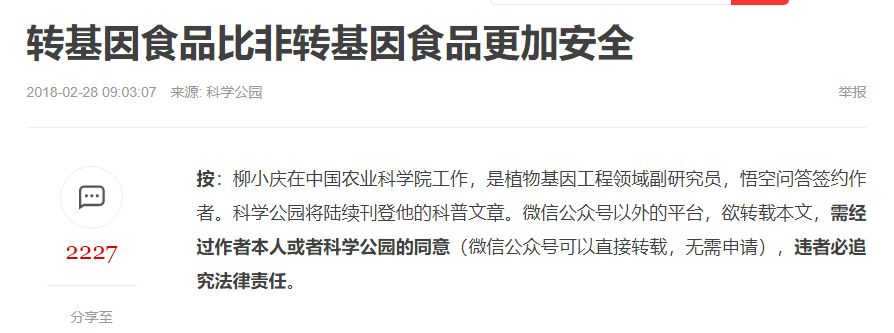 2)説“轉基因食品比非轉基因食品還更加安全”,指的不是技術保障環節,而恰恰指的是執行監管環節。國家對“轉基因”生物品種的監管的確比“非轉基因”更加嚴苛,而且不是一般的嚴苛。這究竟是為什麼?其背後的考量是什麼?我個人理解,一旦因“轉基因”環節失誤而導致安全事故,其造成的危害程度及影響範圍,可能不是一般“非轉基因”安全事故可以比擬的。假若“轉基因生物品種在技術環節上已不存在任何重大安全隱患問題”已成為科學界普遍共識的話,完全可以建議國家及時廢止轉基因生物安全評審制度,取消頒發“農業轉基因生物安全證書”。同時,國家今後也不再需要安排任何與轉基因技術相關的科研攻關項目!