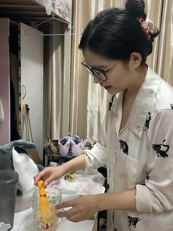 標誌性的煲湯環節、説話的語氣語調……網友們紛紛讚歎“每一個步驟都模仿到了王蓉的精髓”“陳沛兮兮兮果然是懂王蓉的”“如果不是看到那隻塑料鴨子和玩偶們,真的要信以為真了”。