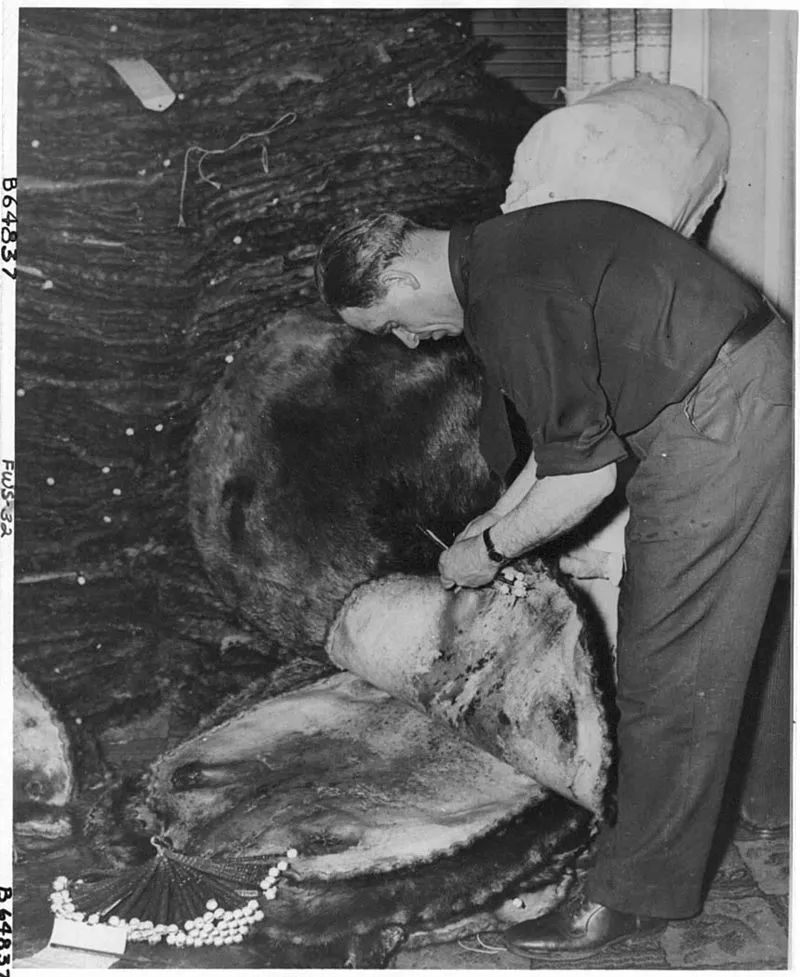 堆積儲存起來的河狸毛皮,北美河狸毛皮曾是重要的商品 ©Rhode Clarence, U.S. Fish and Wildlife Service