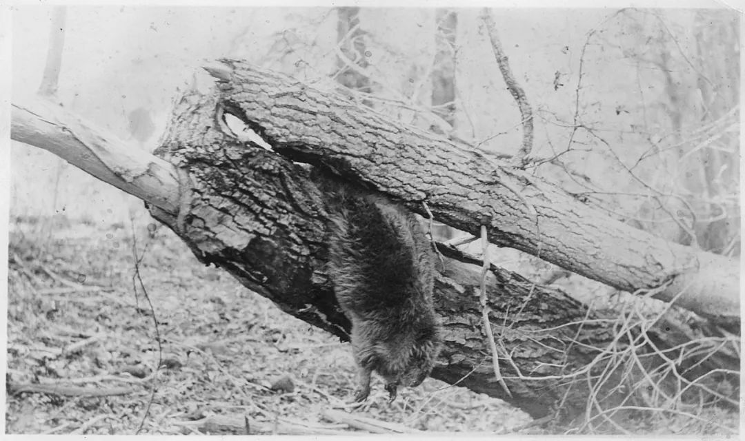 不幸被倒下的樹壓住死掉的河狸…… ©National Archives and Records Administration