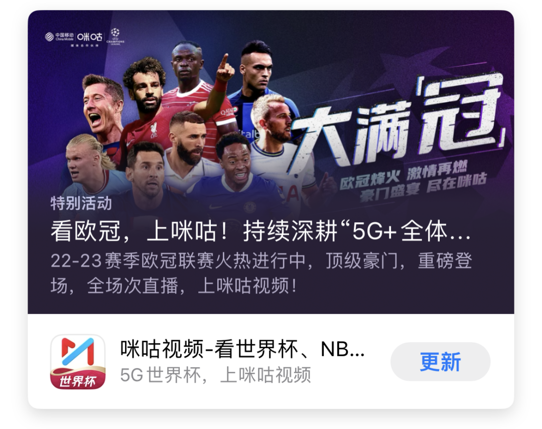 這6家公司中,有4家為地方電視台,另外兩家為抖音集團和中國移動咪咕。緊張的廝殺已經在咪咕視頻與抖音系之間展開。在蘋果應用商店搜索“咪咕視頻”和“抖音”,可以看到兩款產品均已在搜索卡片中加入了世界盃宣傳語。