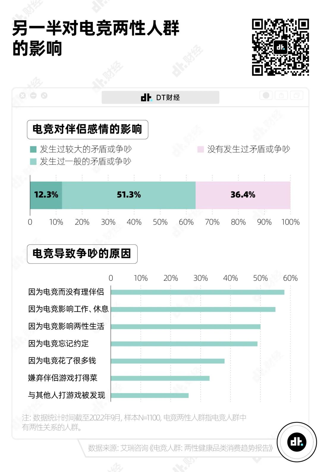電競伴侶爭吵最大原因是“因為電競而沒有理伴侶”,排名第二、第三的原因分別是“因為電競影響工作、休息”和“因為電競影響兩性生活”。這些吵架原因,把“電競”換成“工作”或別的事也都成立。
