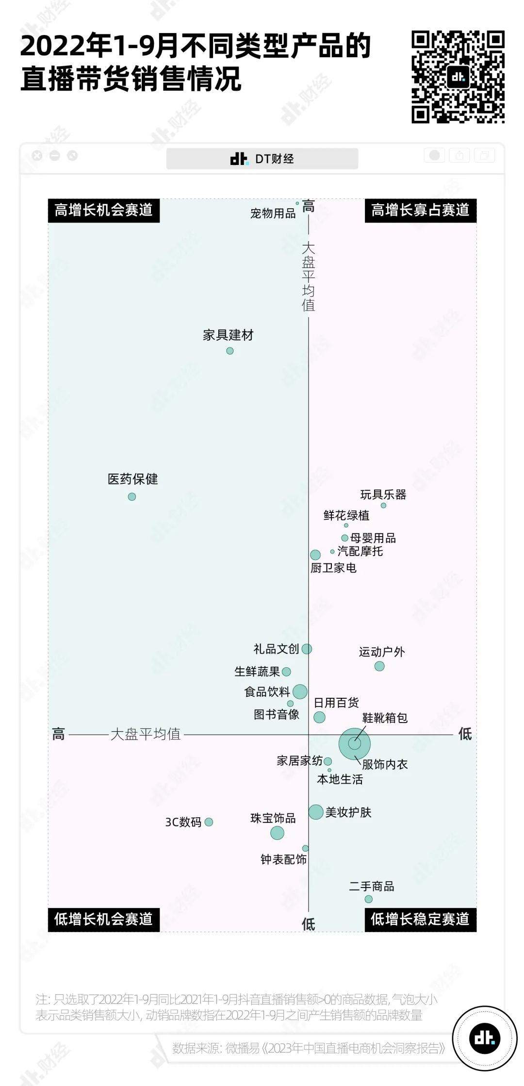 從直播銷售額增幅角度來看,寵物用品、傢俱建材、醫藥保健銷售額增幅最大,可見,小眾行業增長勢能充足。