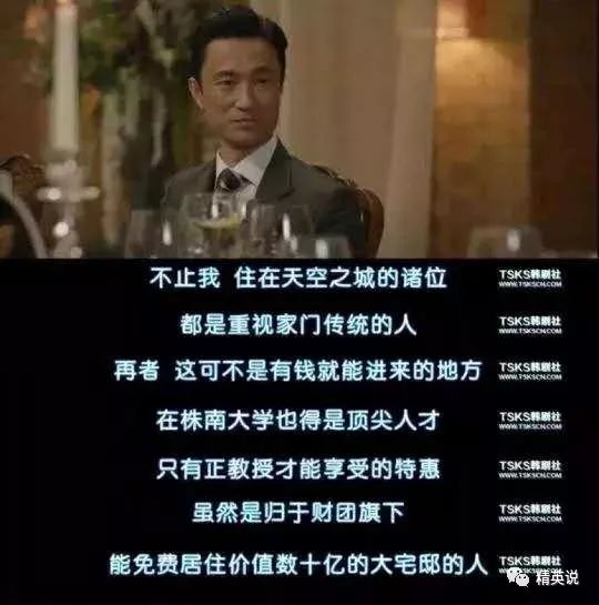 和所有東亞父母一樣,精英家庭對子女的教育愈發重視,住在天空之城的五位太太們唯一的目標,就是讓子女考入韓國前三的大學、繼承父母的職業,進一步鞏固父輩已佔有的社會地位和資源,延續家族的榮光。