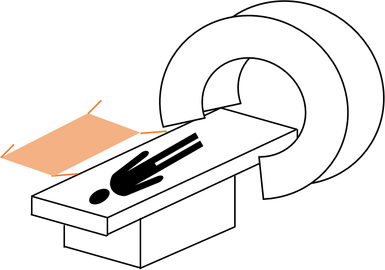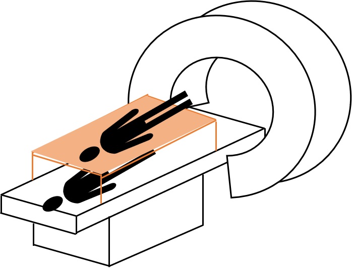 這是非常簡易的一種版本,適合於目前絕大多數的CT機器,只需要做一個架子,讓第一個病人躺下之後,把架子蓋上去,然而再讓第二個病人躺上去,這時候再掃描CT,就可以同時完成兩個人的CT檢查了。