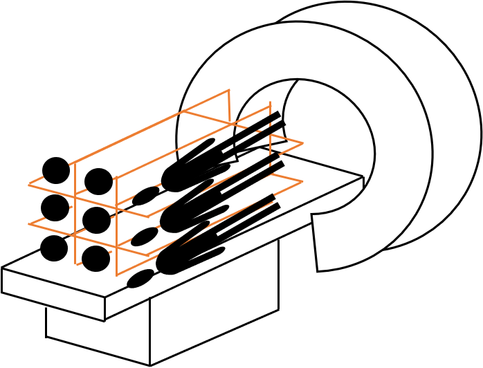 有了這個想法之後,我內心激動不已,只要設計一個裝置,可以讓人疊在一起,就可以讓他們同時做CT。