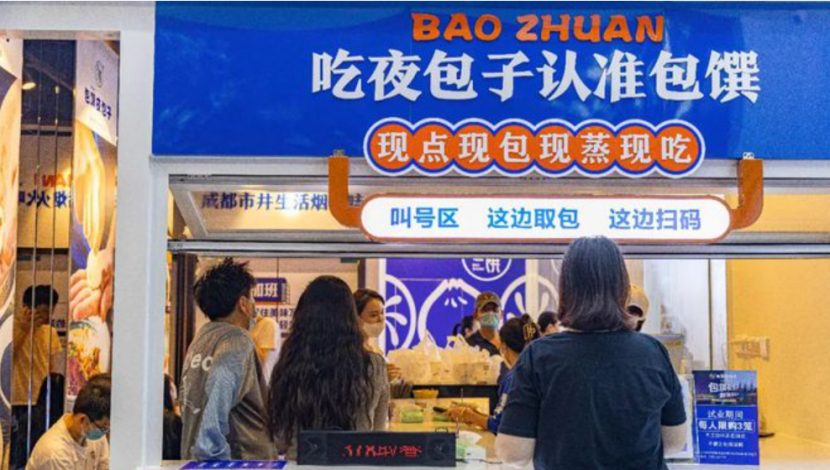 2020年國慶期間,姜華就在成都九眼橋酒吧街支了個露天夜宵攤賣包子。眼看着賣得紅火,他乾脆就在那兒開了一個檔口店。生意最好的時候,這個店一天能賣出2000多籠包子,營業額近2萬。