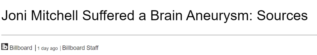 此後,樂迷們一直沒等到她治癒的好消息,反而是收到了她患上更嚴重疾病的噩耗——2015年3月31日,71歲的Joni Mitchell被發現昏迷在家中,經確診為腦動脈瘤破裂。