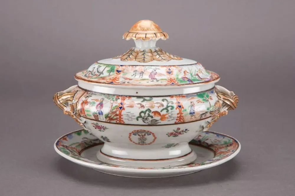 當時外銷歐洲的瓷器大致可分為看樣選貨和來樣定製兩類。前者選購的是中國本土已經生產好的瓷器;後者是來華商人們自帶西方器形的模具和所需紋樣的畫稿來定製款樣。
