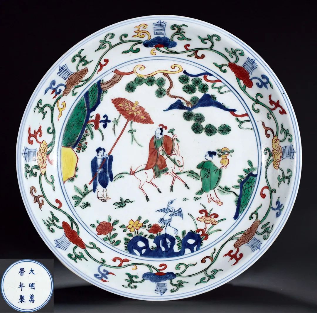 明萬曆青花五彩壽星圖盤