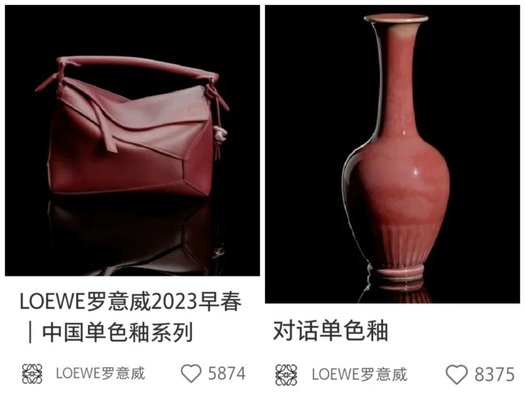 11月9日、10日,羅意威在小紅書平台發佈了兩則2023早春中國單色釉系列包包視頻。